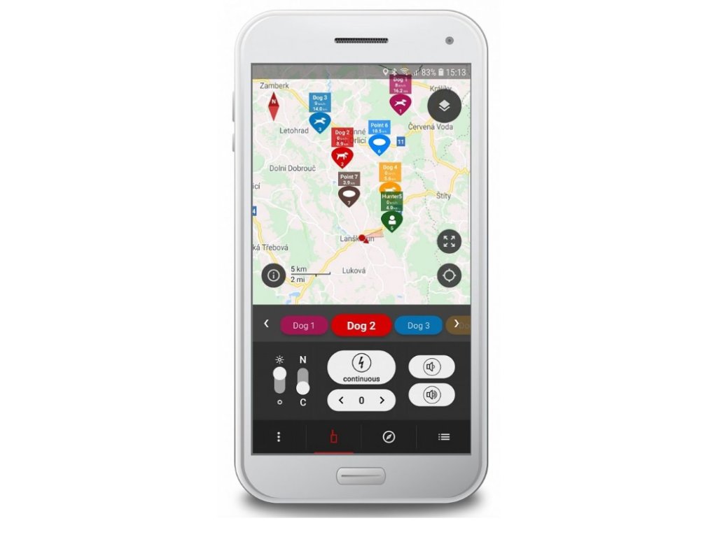 GPS lokalizačný a výcvikový systém pre psov s možnosťou využitia mapových podkladov.