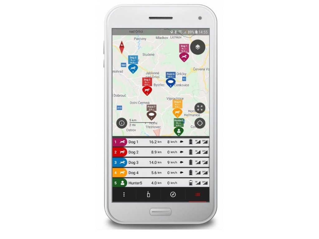 Možnosť sledovania až 13 psov na jednom prijímači