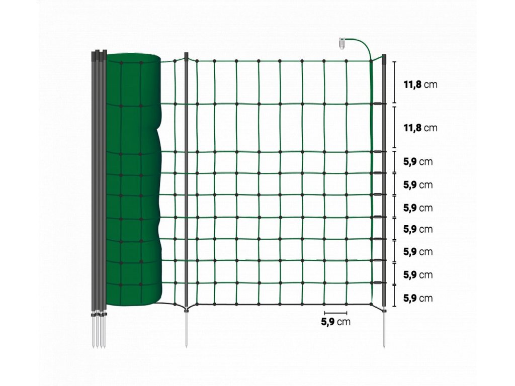 - Elektrická sieť s 20 tyčami, s výškou 65 cm a s dlžkou 50 m